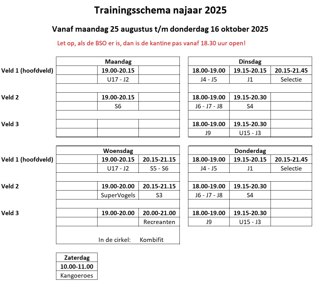 Trainingsschema veld