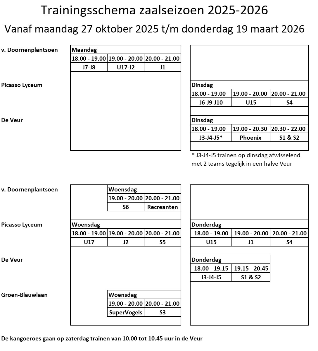 Trainingsschema zaal